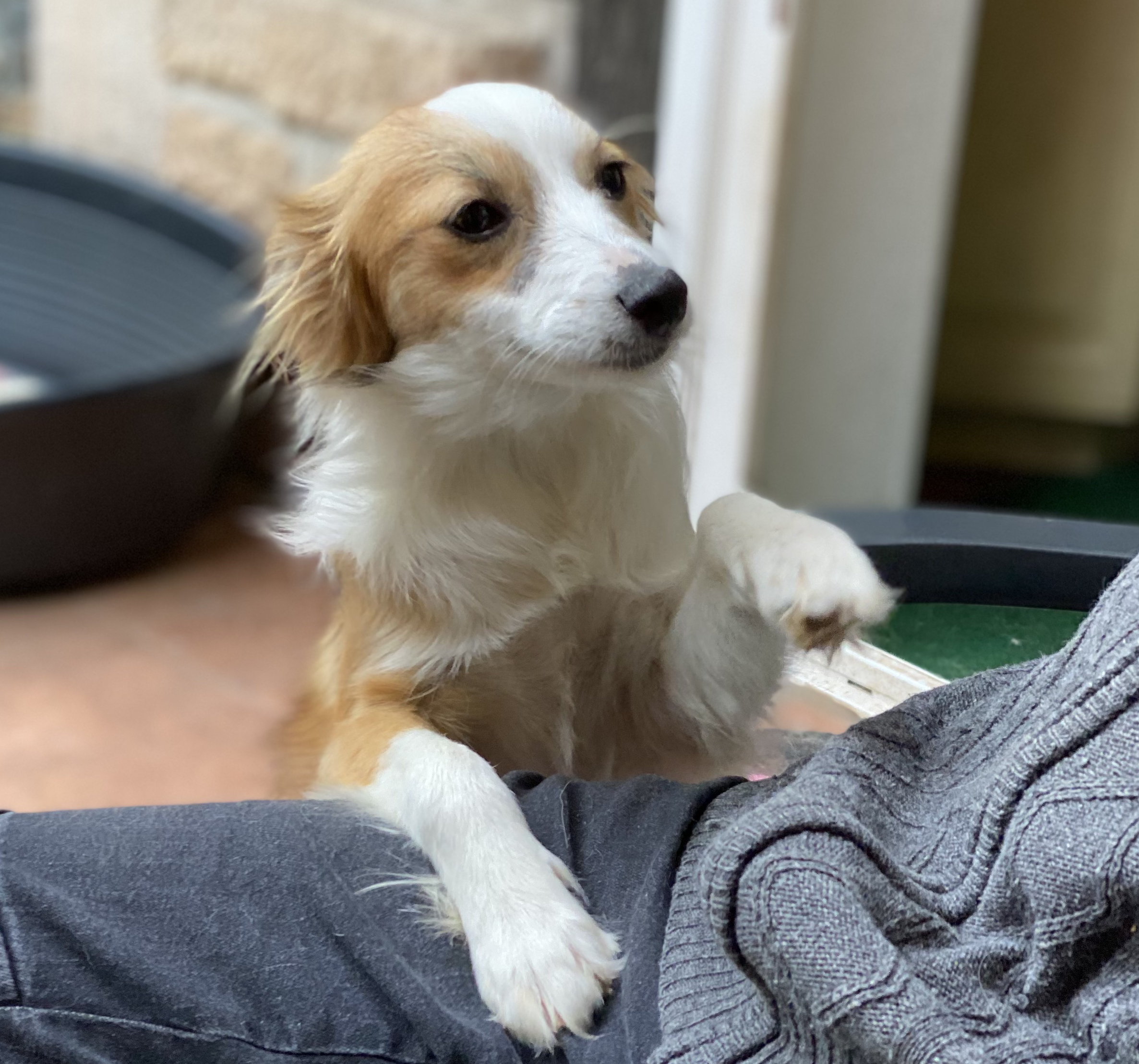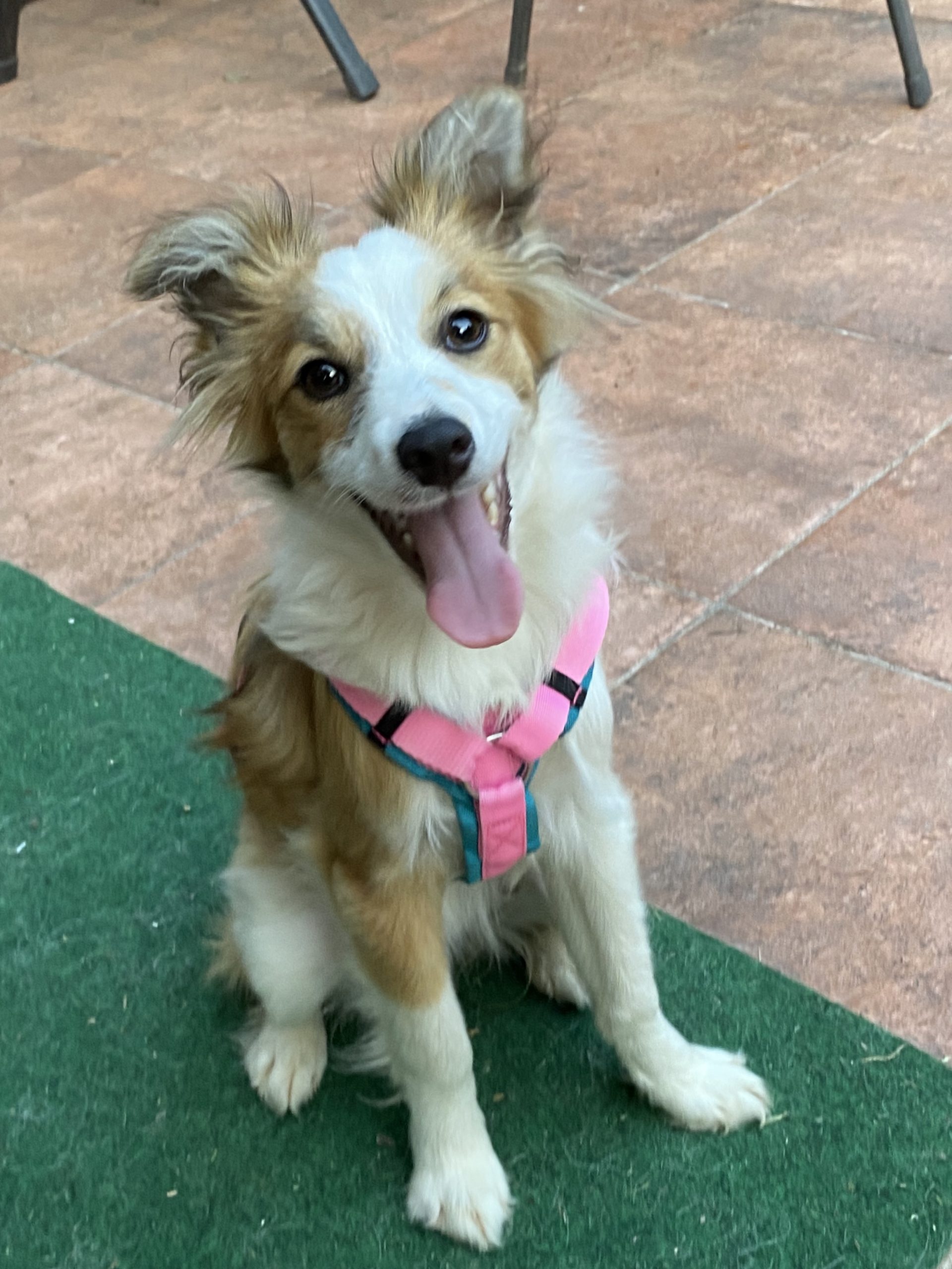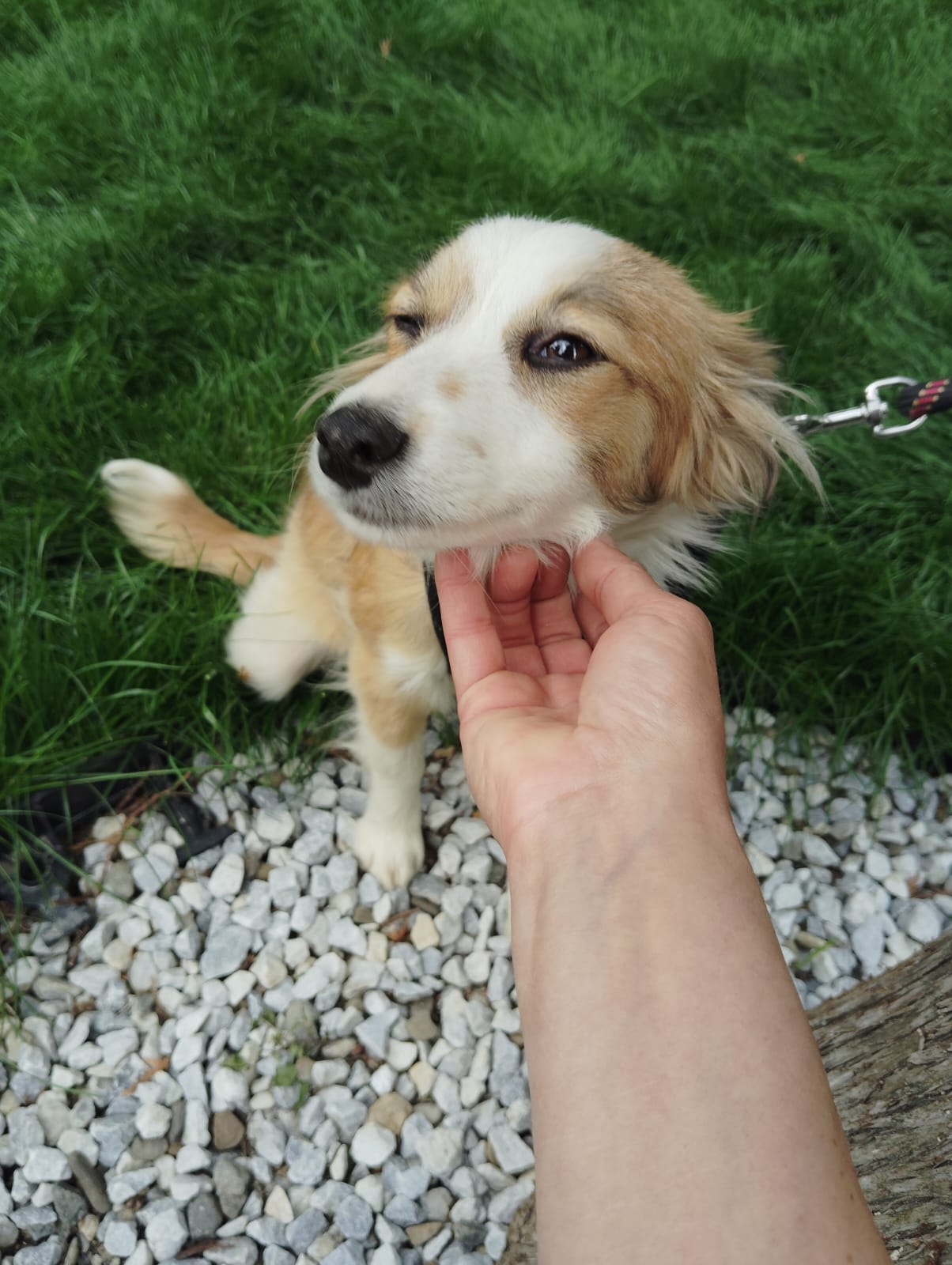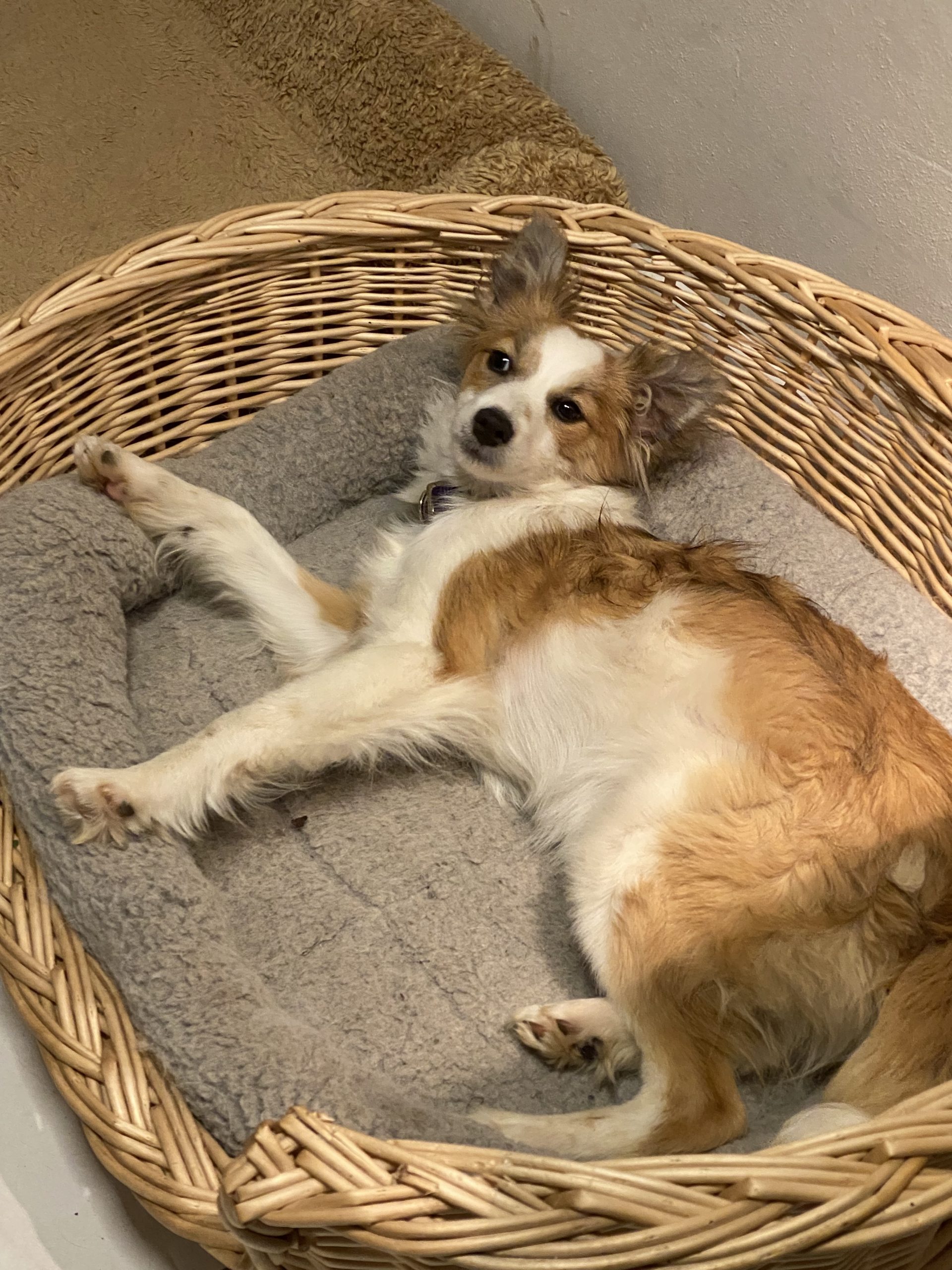 Mein Pflegefrauchen sagt, ich bin sehr schlau und lerne sehr schnell. Ich gehe schon perfekt an der Leine, ich höre schon sehr gut auf meinen Namen. Stubenrein bin ich natürlich auch. Autofahren macht mir Spaß. Alleine bleiben kenne ich hier noch nicht. Es sind ja immer Hunde da. Katzen laufen manchmal durch unseren Garten, die sind verdächtig, die huschen so weg. ich würde gerne noch so viel mehr lernen, denn ich bin ein kleiner Hütehund-Mischling. Ich passe gut auf und wenn mir niemand etwas beibringt, suche ich mir selber eine Beschäftigung! Doch ich kann auch sehr gut im Körbchen chillen und der Welt zuschauen.