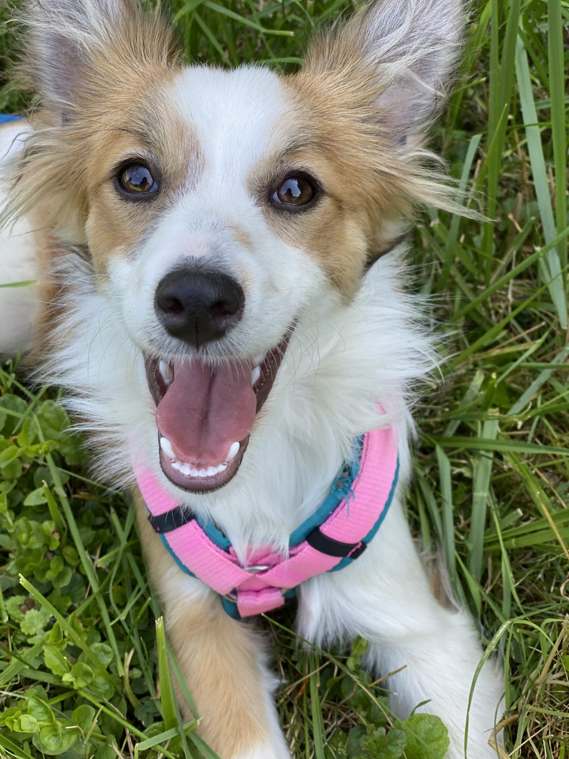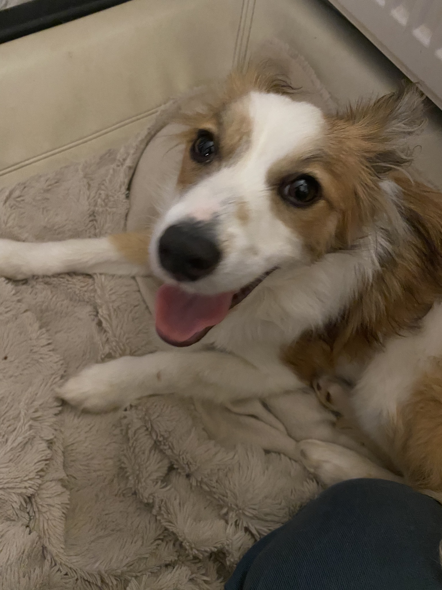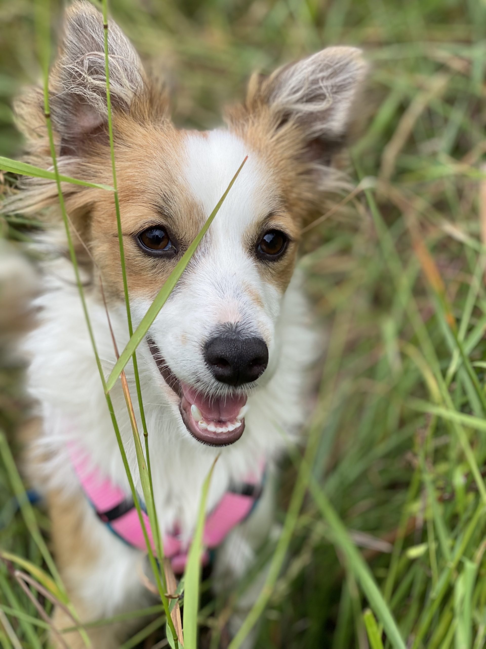 Mein Pflegefrauchen sagt, ich bin sehr schlau und lerne sehr schnell. Ich gehe schon perfekt an der Leine, ich höre schon sehr gut auf meinen Namen. Stubenrein bin ich natürlich auch. Autofahren macht mir Spaß. Alleine bleiben kenne ich hier noch nicht. Es sind ja immer Hunde da. Katzen laufen manchmal durch unseren Garten, die sind verdächtig, die huschen so weg. ich würde gerne noch so viel mehr lernen, denn ich bin ein kleiner Hütehund-Mischling. Ich passe gut auf und wenn mir niemand etwas beibringt, suche ich mir selber eine Beschäftigung! Doch ich kann auch sehr gut im Körbchen chillen und der Welt zuschauen.