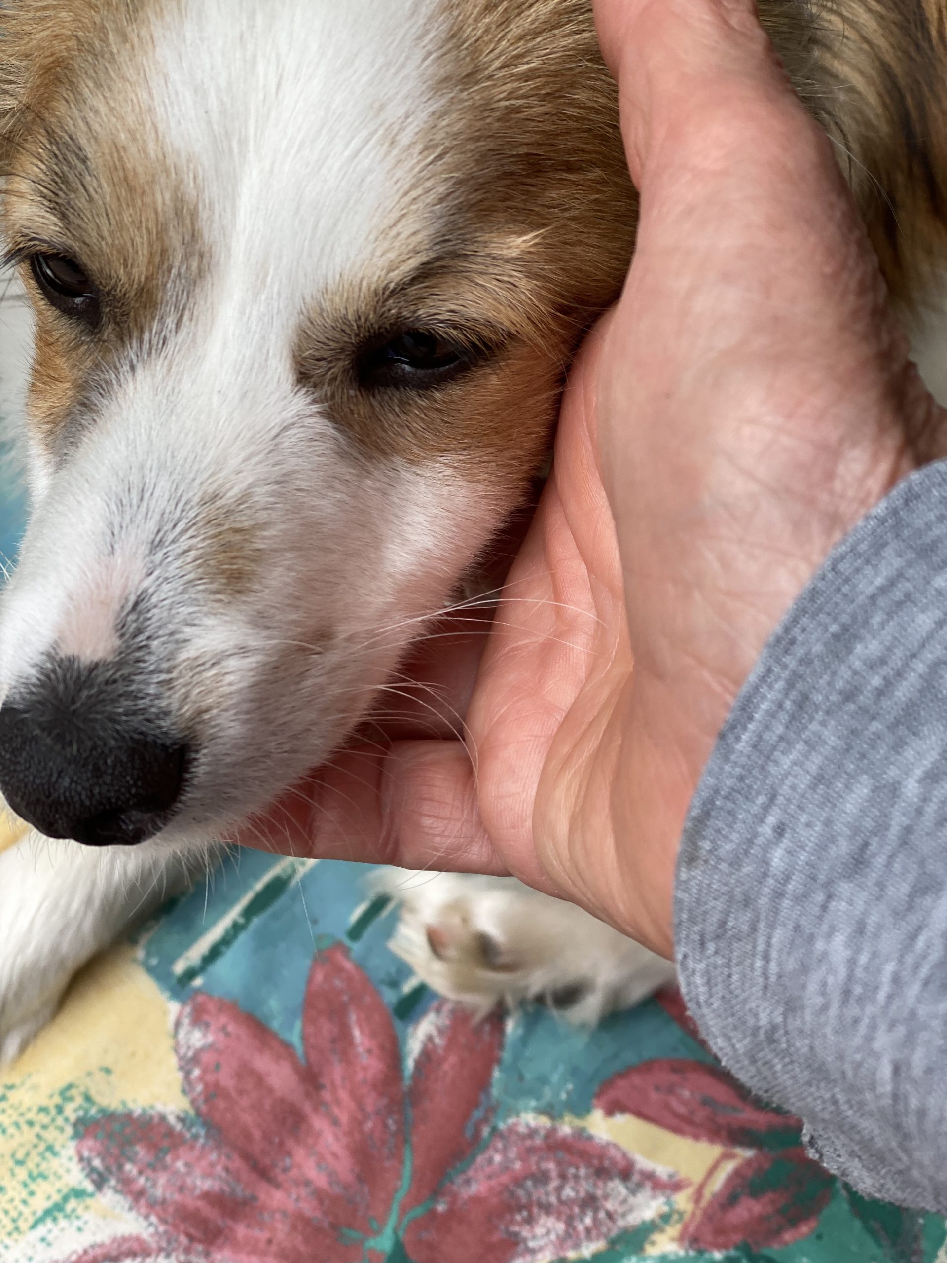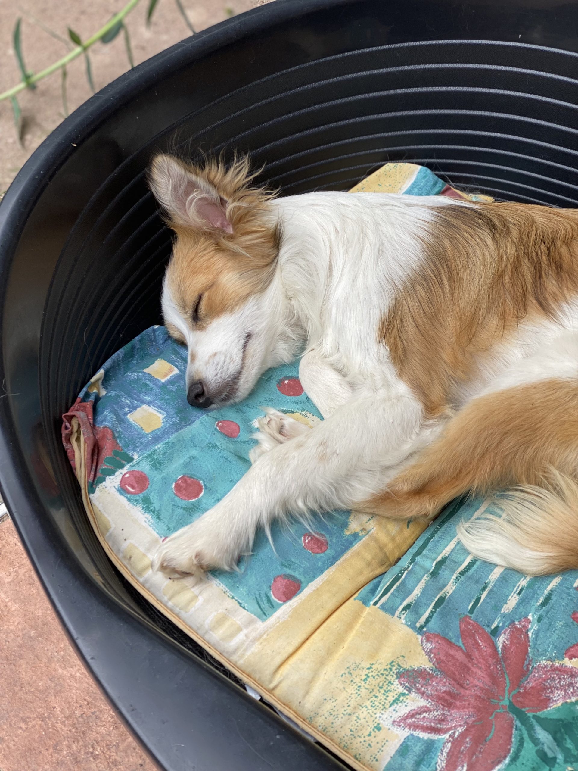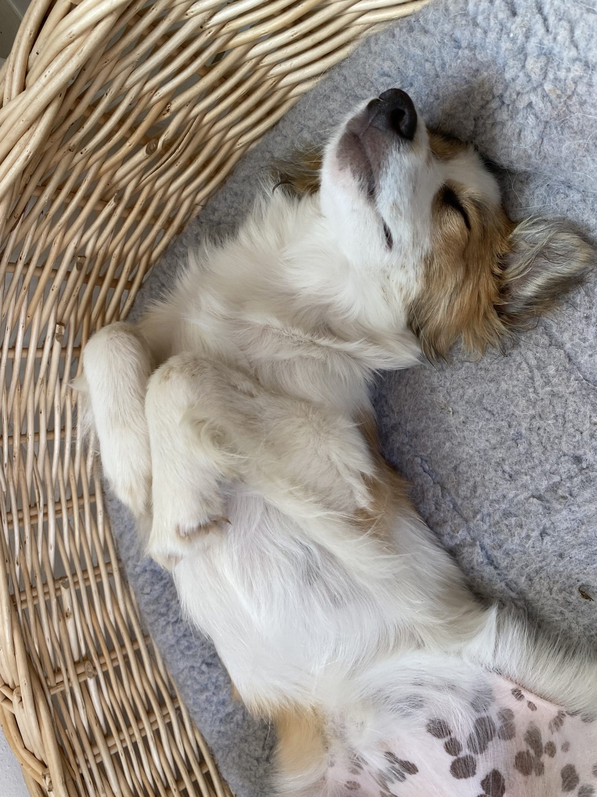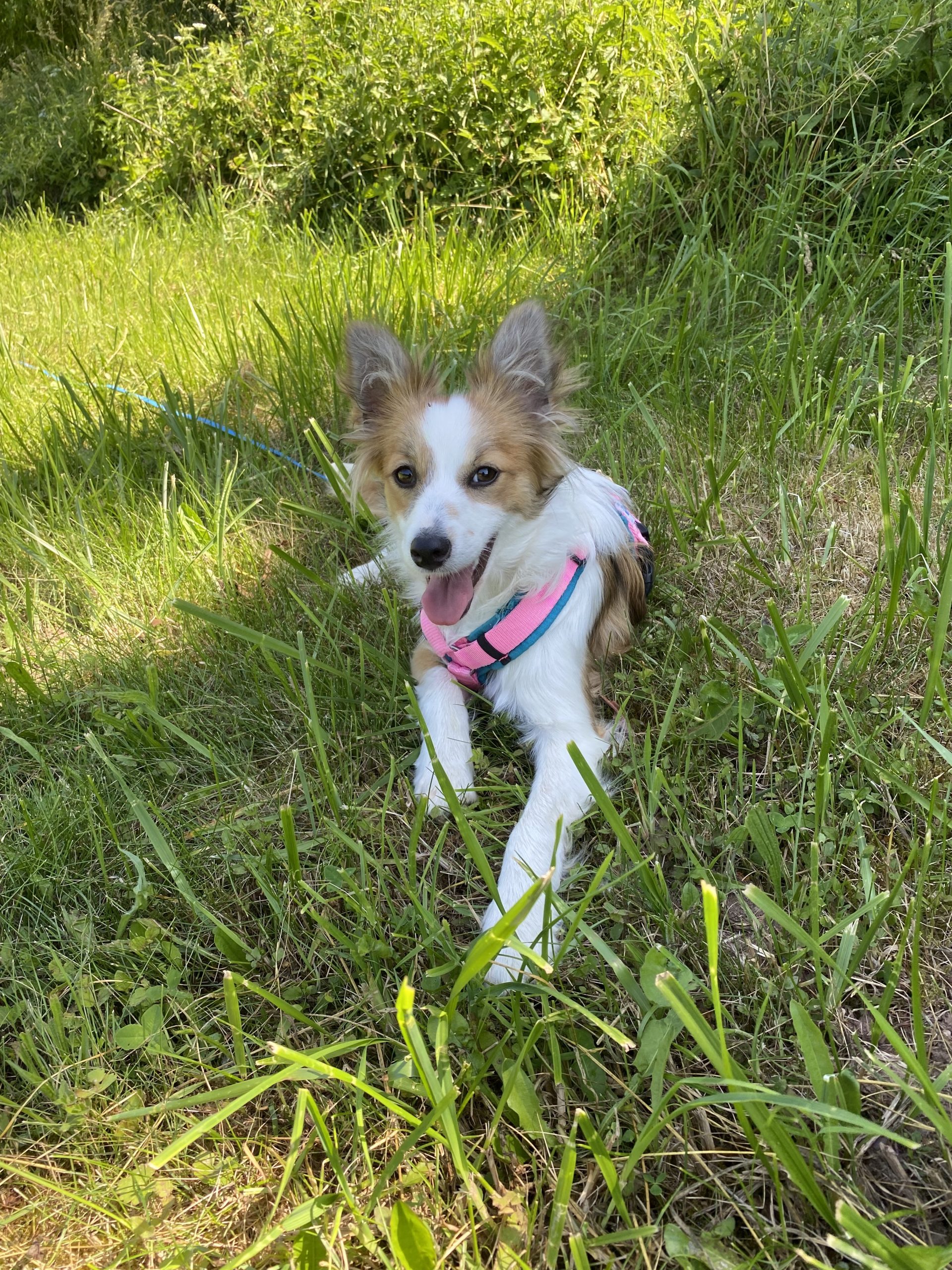 Mein Pflegefrauchen sagt, ich bin sehr schlau und lerne sehr schnell. Ich gehe schon perfekt an der Leine, ich höre schon sehr gut auf meinen Namen. Stubenrein bin ich natürlich auch. Autofahren macht mir Spaß. Alleine bleiben kenne ich hier noch nicht. Es sind ja immer Hunde da. Katzen laufen manchmal durch unseren Garten, die sind verdächtig, die huschen so weg. ich würde gerne noch so viel mehr lernen, denn ich bin ein kleiner Hütehund-Mischling. Ich passe gut auf und wenn mir niemand etwas beibringt, suche ich mir selber eine Beschäftigung! Doch ich kann auch sehr gut im Körbchen chillen und der Welt zuschauen.