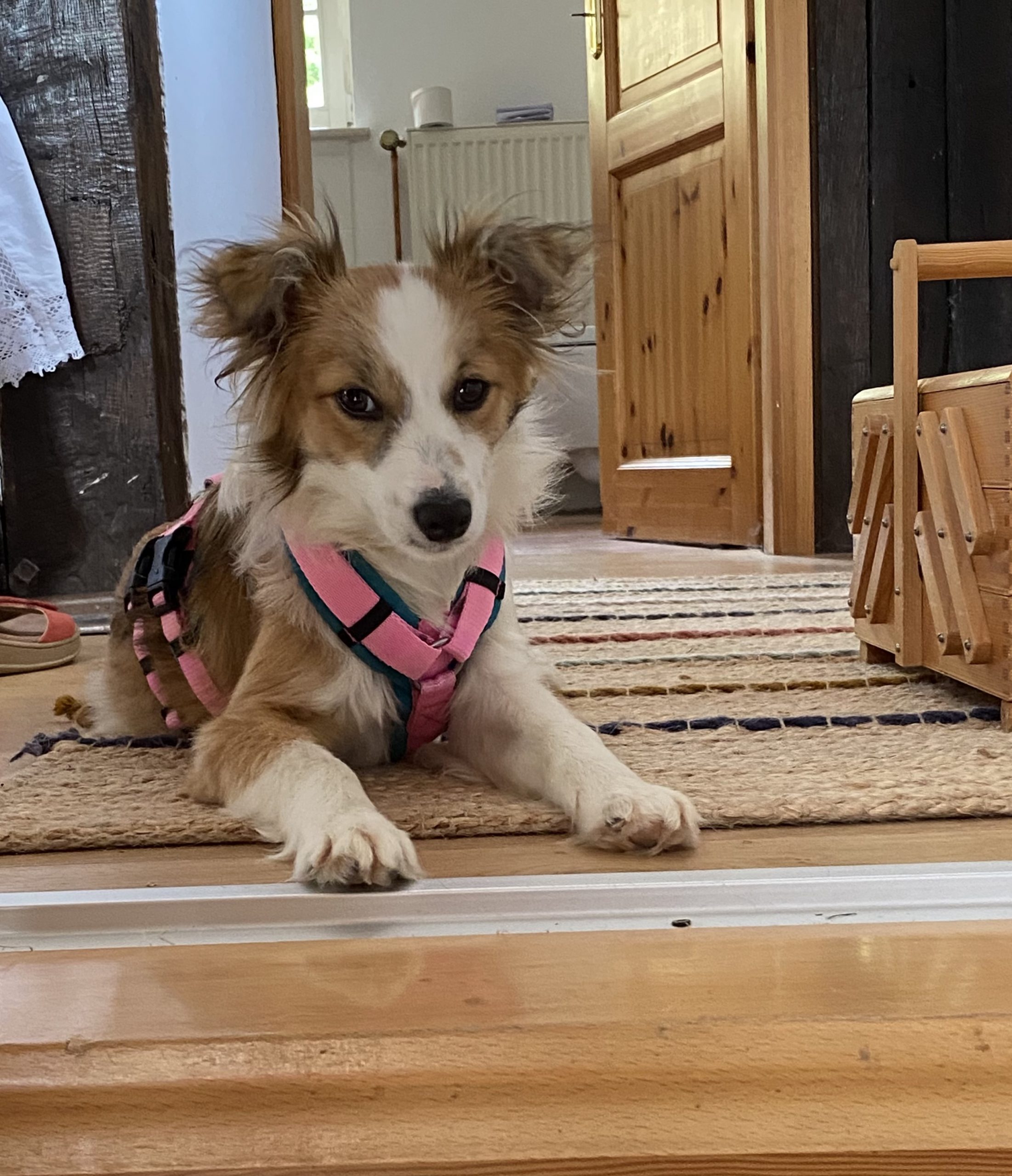 Sie hat sofort ihr neues Zuhause-auf-Zeit inspiziert und ist gleich am nächsten Morgen mit uns eine kleine Runde spazieren gegangen! Angst scheint für sie ein Fremdwort zu sein! Ihr Schwänzchen wedelt unaufhörlich, noch ist sie ziemlich aufgekratzt, wird aber sicher bald zur Ruhe kommen. Sie ist einfach zauberhaft!