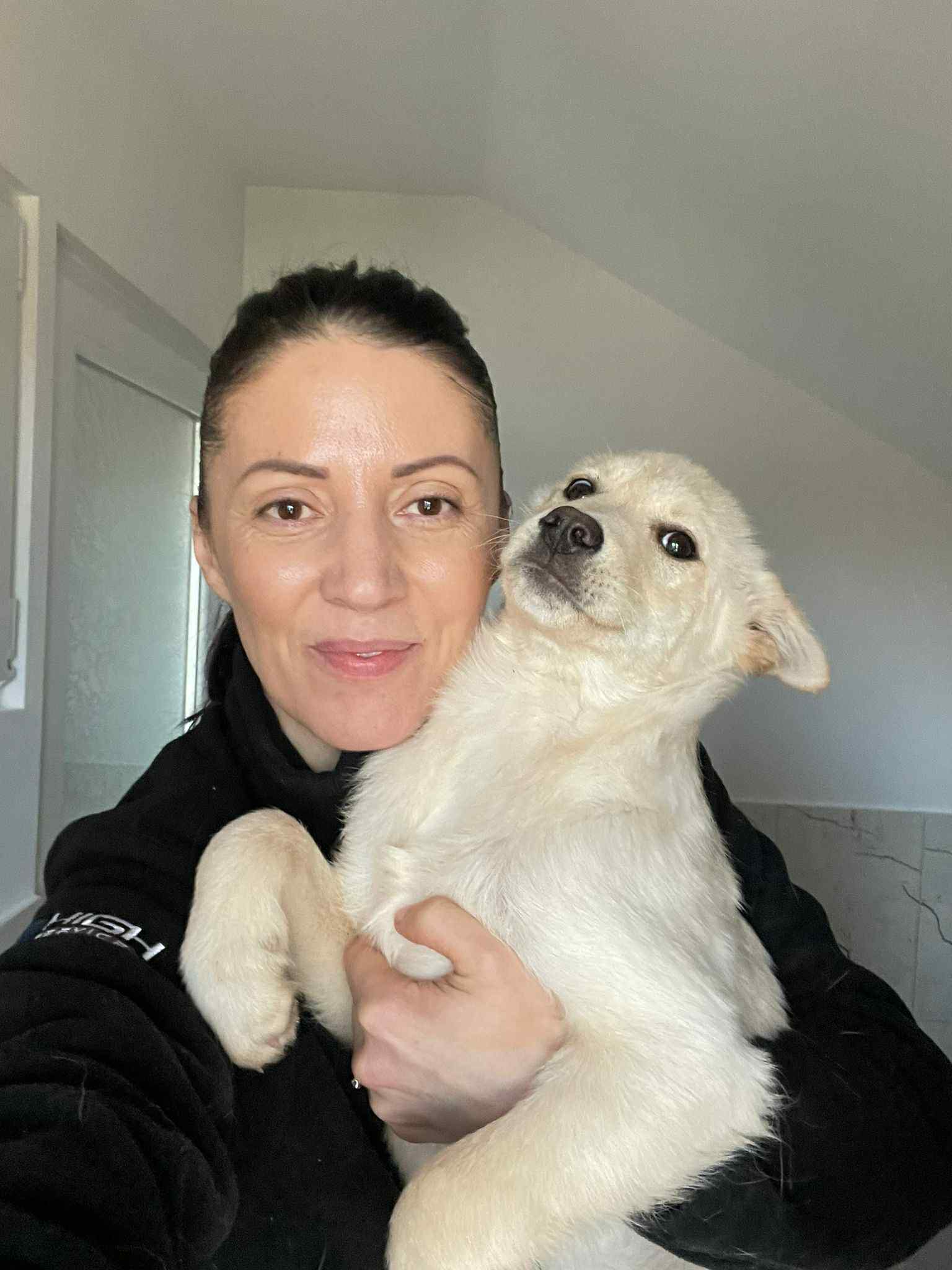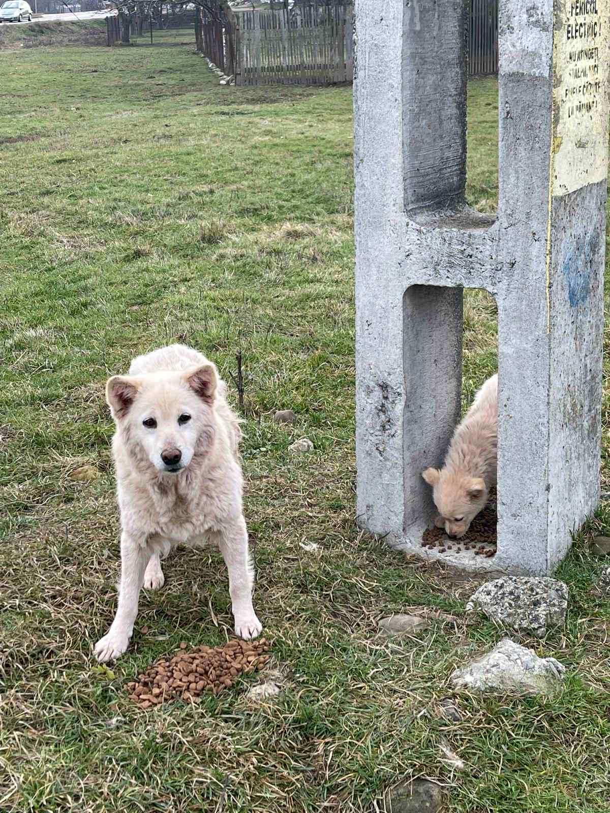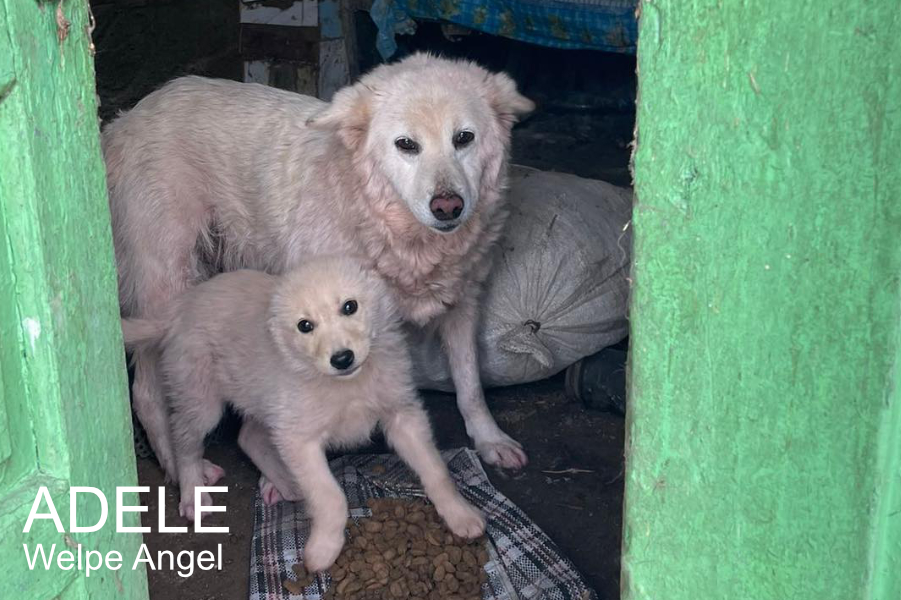 in einem kleinen Ort nahe Piatra Neamt tauchte plötzlich eine Hundemutter mit 2 weissen Welpen auf. Nicoleta, eine befreundete Tierschützerin, fütterte die kleine Familie. Sie wurden recht schnell zutraulich. Leider lag einer der Welpen eines morgens tot auf der viel befahrenen Straße. Wir entschieden, die Hündin mit dem letzten Welpen einzufangen. Es war ein kleines Mädchen. Es bekam den Namen Angel. Die Hunde wurden medizinisch versorgt, die Mutter kastriert, aber, da sie so zahm und freundlich waren konnten wir sie auf Pflegestellen in Deutschland unterbringen.