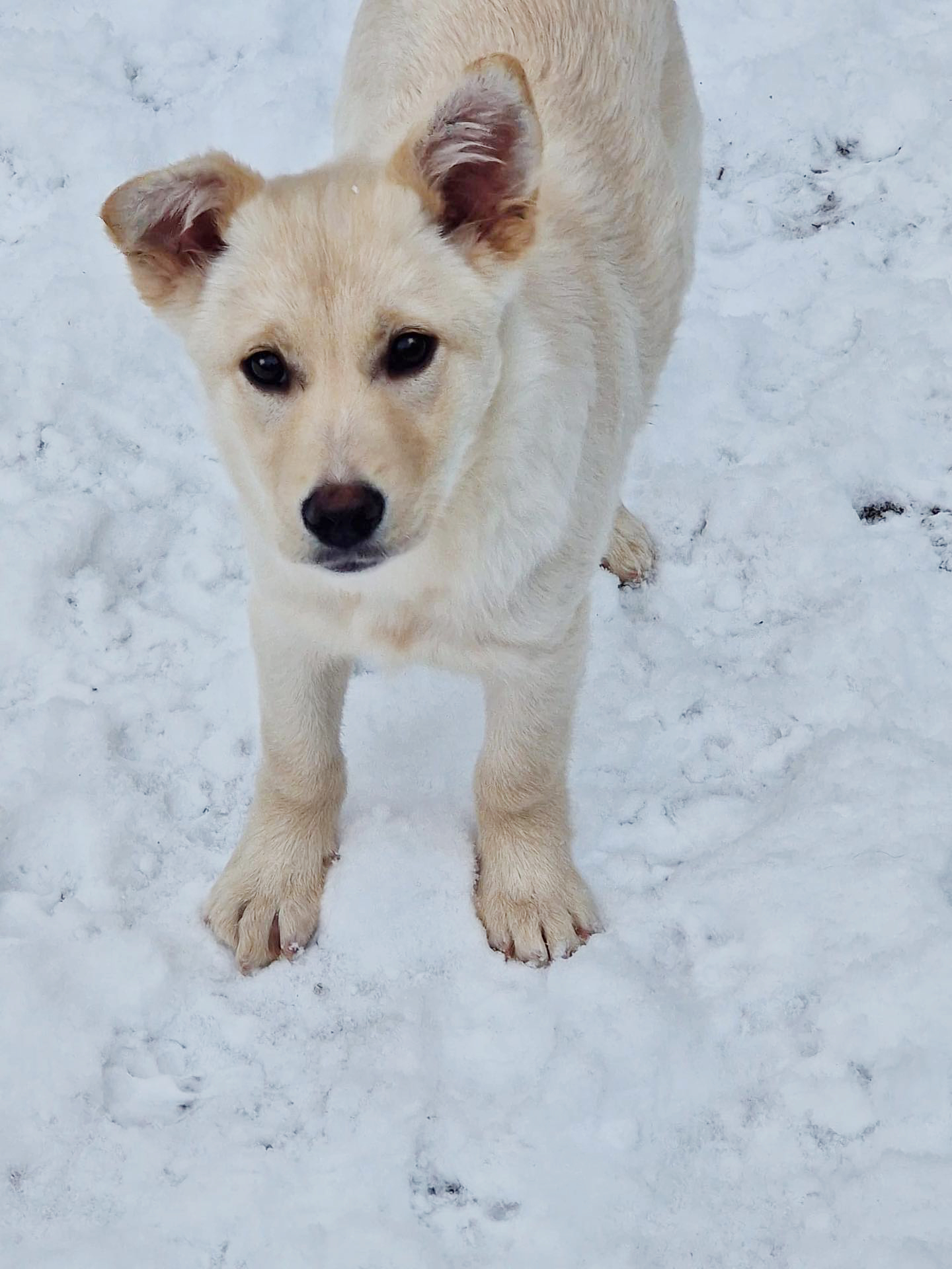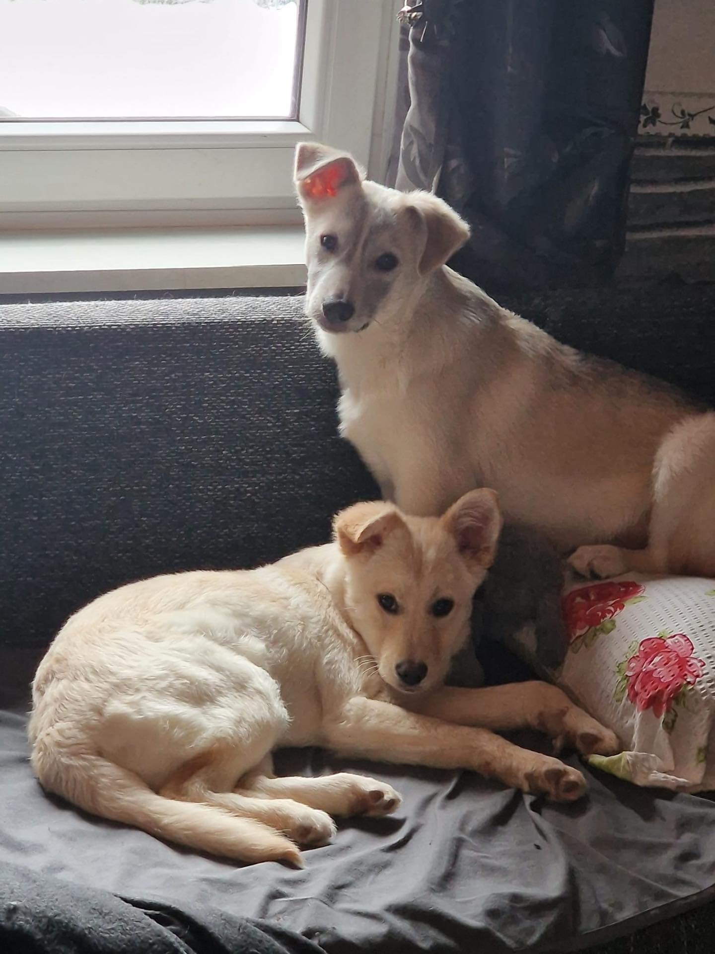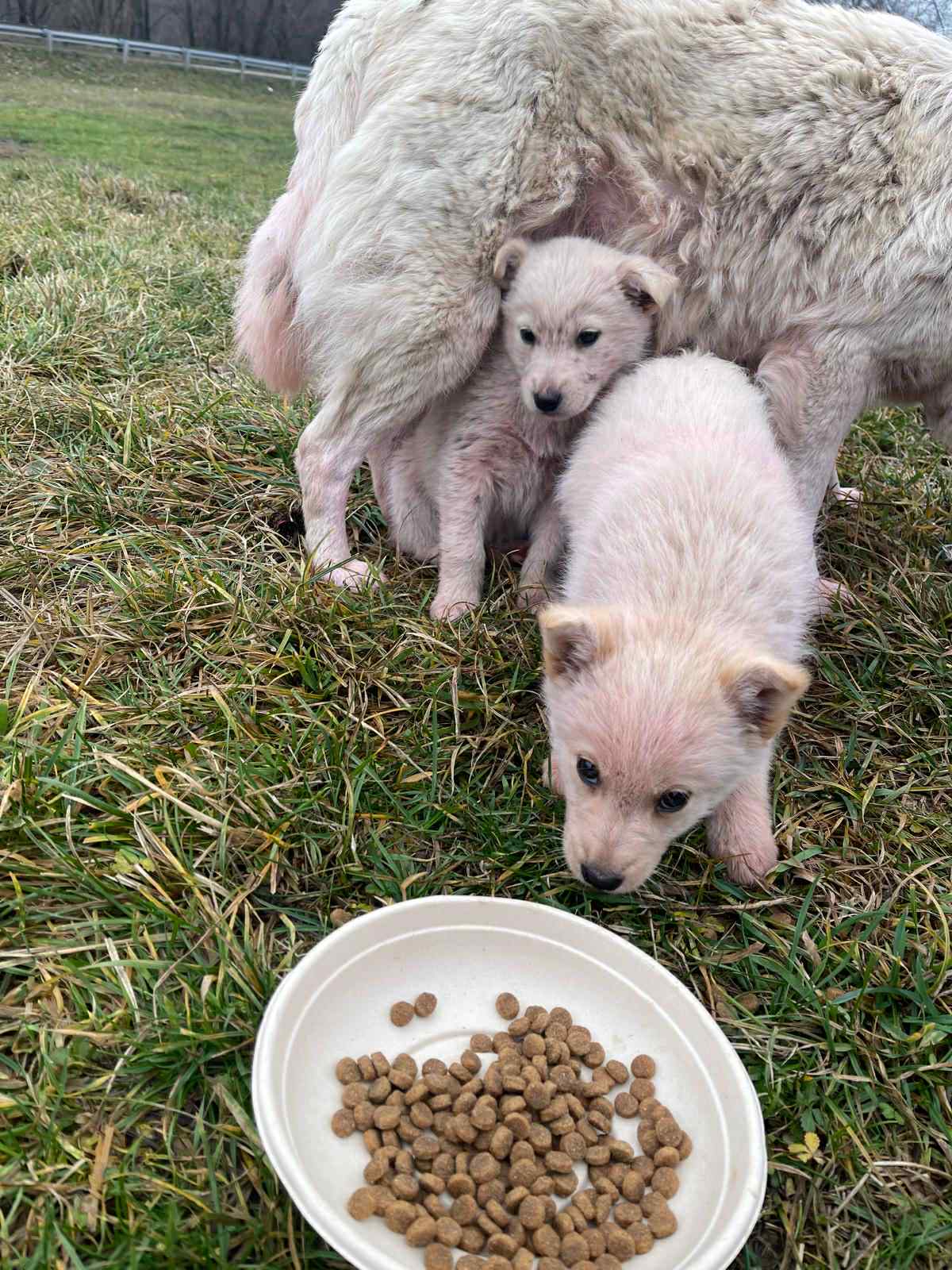 in einem kleinen Ort nahe Piatra Neamt tauchte plötzlich eine Hundemutter mit 2 weissen Welpen auf. Nicoleta, eine befreundete Tierschützerin, fütterte die kleine Familie. Sie wurden recht schnell zutraulich. Leider lag einer der Welpen eines morgens tot auf der viel befahrenen Straße. Wir entschieden, die Hündin mit dem letzten Welpen einzufangen. Es war ein kleines Mädchen. Es bekam den Namen Angel. Die Hunde wurden medizinisch versorgt, die Mutter kastriert, aber, da sie so zahm und freundlich waren konnten wir sie auf Pflegestellen in Deutschland unterbringen.