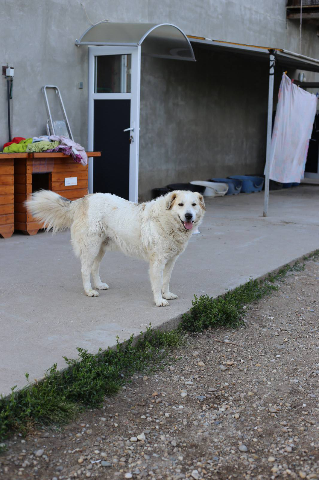 Mit Flocke, einer Hündin mit der er zusammen zu uns gekommen ist, hat er sogar eine innige Freundschaft geschlossen, zeigt sich hier verspielt und freundlich. Trotzdem würden wir ihn als Herdenschutzmischling nicht als einen Hund beschreiben, der potentiell mit jedem Artgenossen auskommt, und präferieren demnach ein Zuhause als Einzelhund. Wenn ein anderer Hund bereits vorhanden wäre, braucht er Menschen die wissen wie man solch eine Zusammenführung gut bewerkstelligen kann.