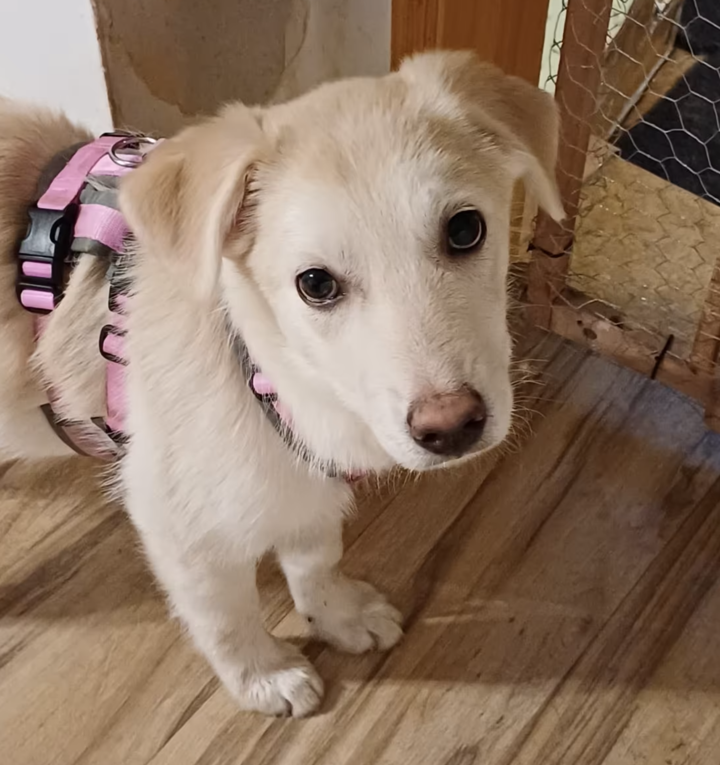 Flocke durfte zusammen mit seinen Geschwistern Rumänien verlassen und lernt nun. auf einer Pflegestelle das Zusammenleben mit Menschen kennen: