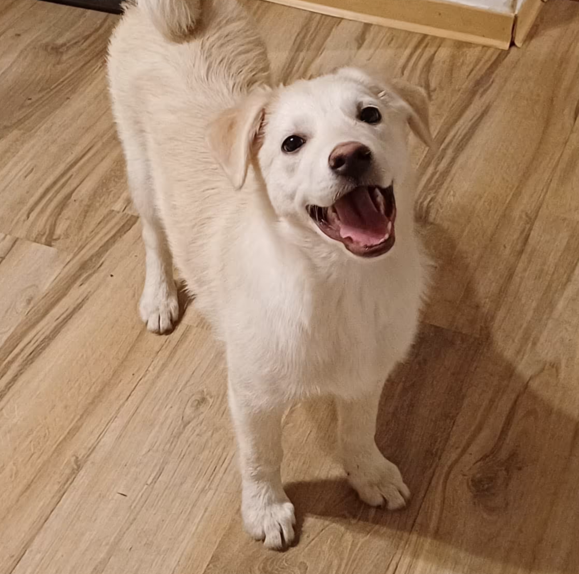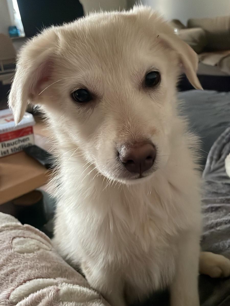 Flocke ist ein junger Rüde mit einem offenen, lustigen und neugierigen Wesen.