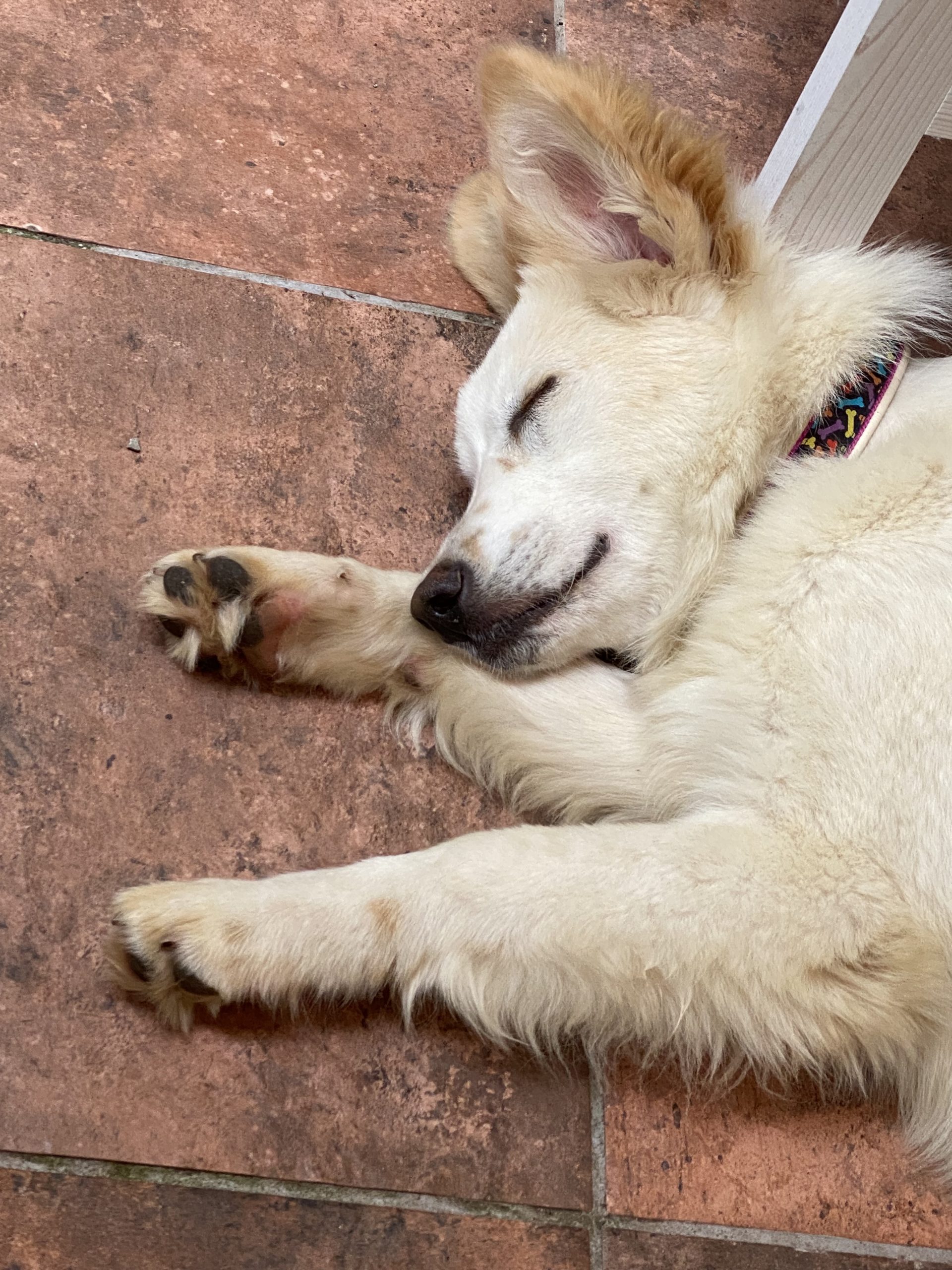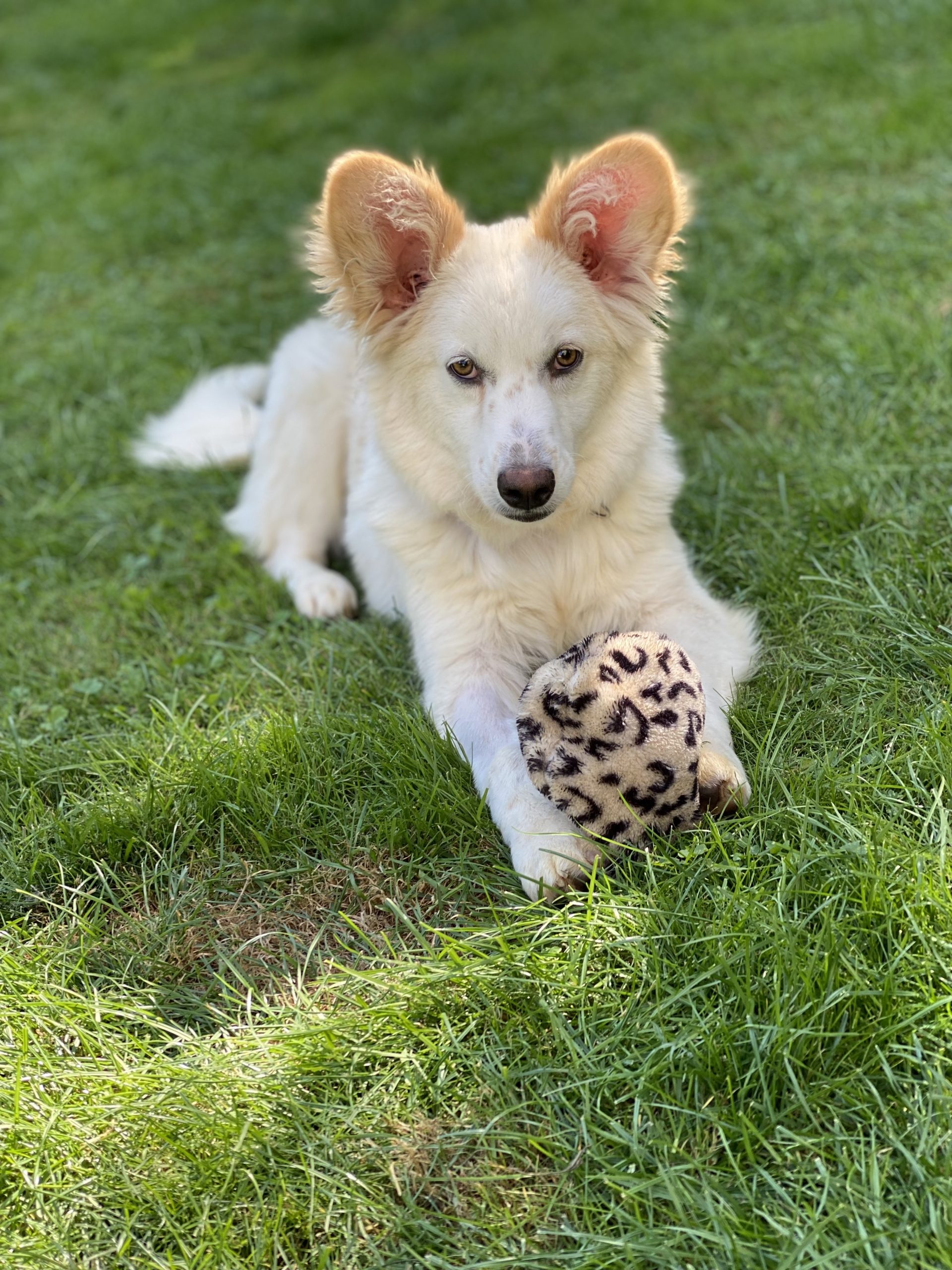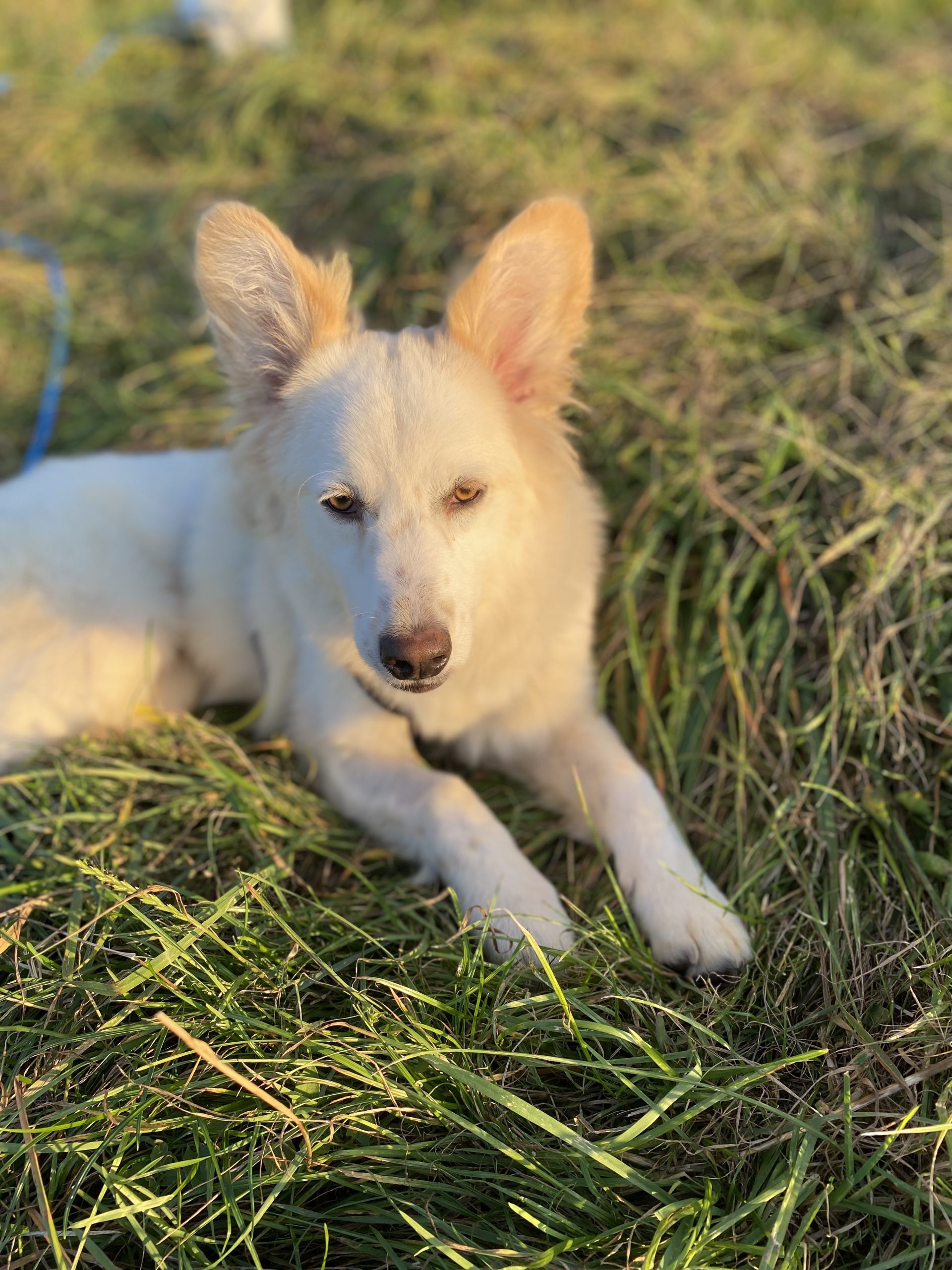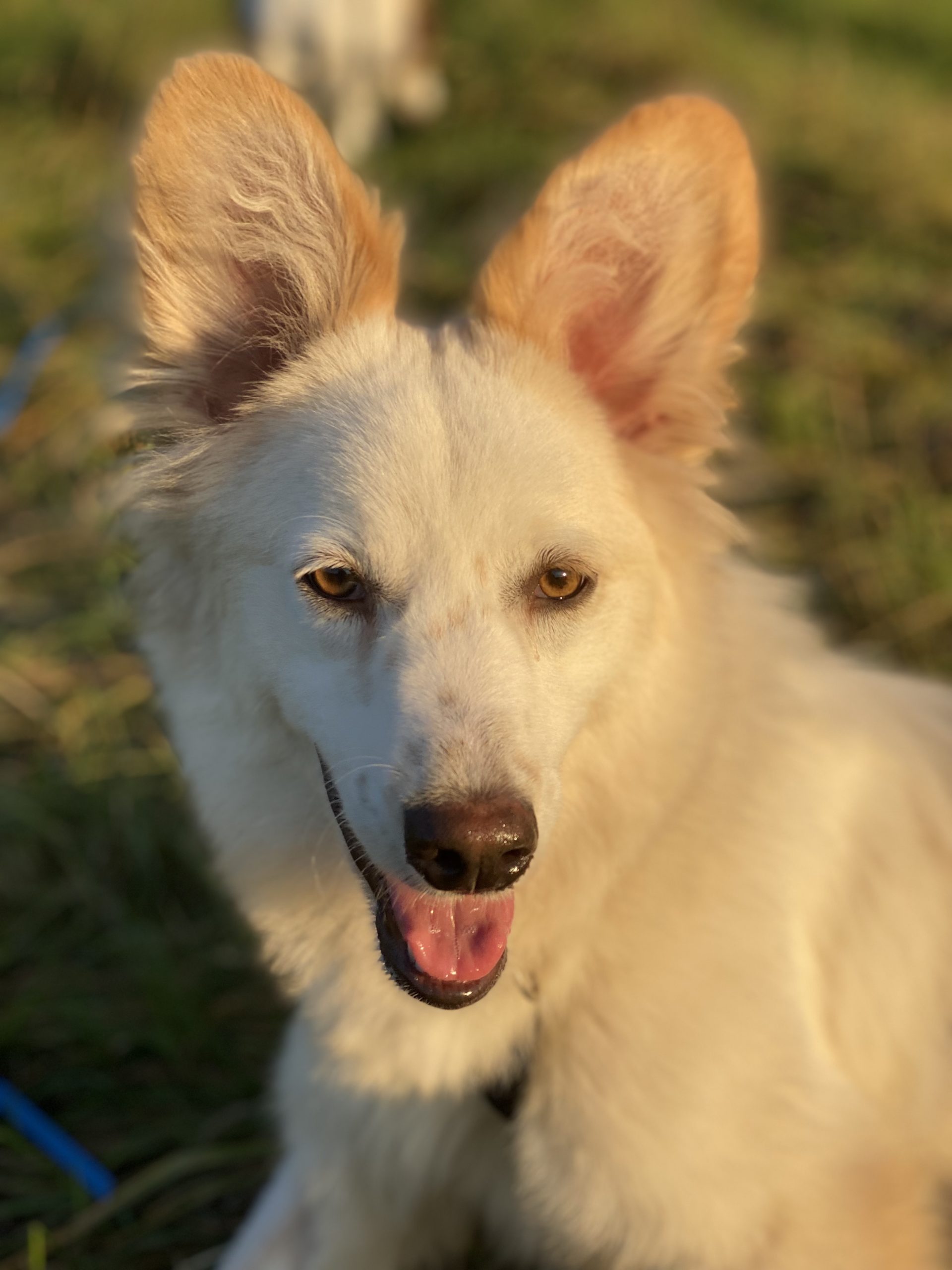 Die kleine Hündin hat eigentlich immer gute Laune, lässt sich von den anderen Hunden sehr gut anleiten und ist ständig auf Entdeckungstour in Haus und Garten, alles ist neu, spannend und ungemein lustig für sie.
