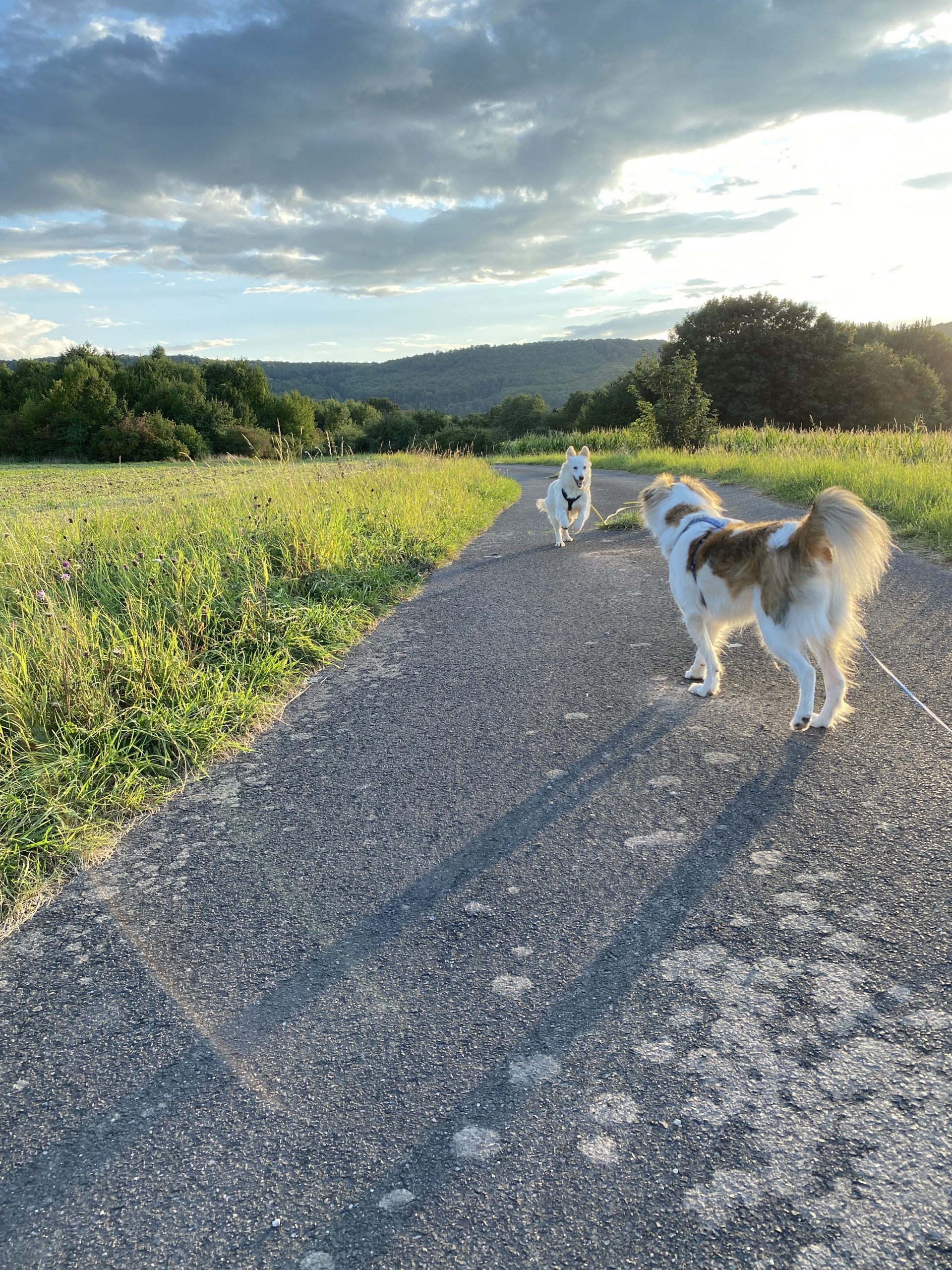 MAthilda und Jenna unterstützen sich gegenseitig. MATHILDA, die jüngere unbekümmerte, hat sich voll ins Leben gestürzt, wie ich es wirklich selten erlebe. Gut geschlafen, bestens ausgeruht, tolles Frühstück und wildes Toben über eine grüne Wiese. Wie lange hat sie das wohl nicht mehr erlebt?