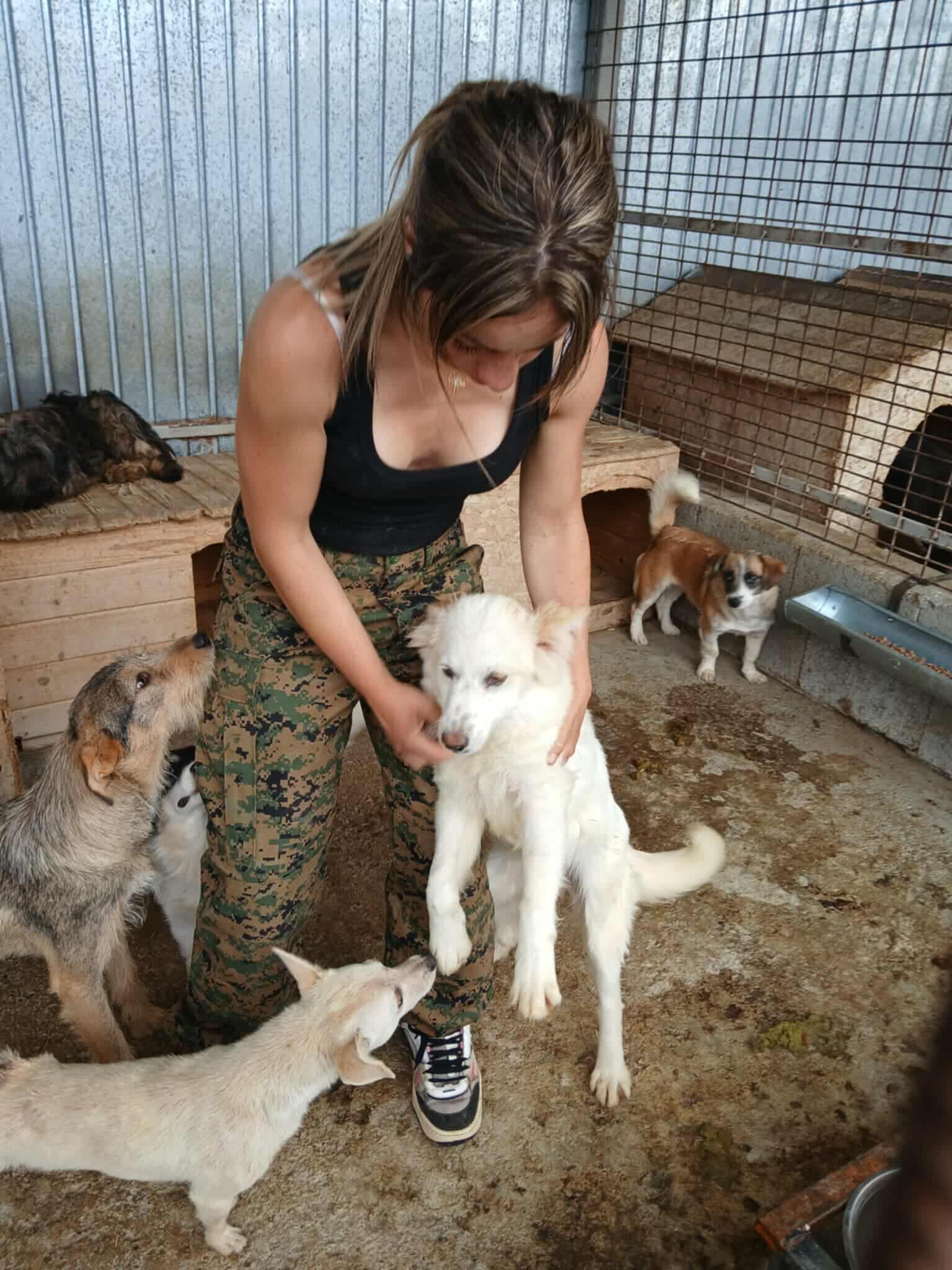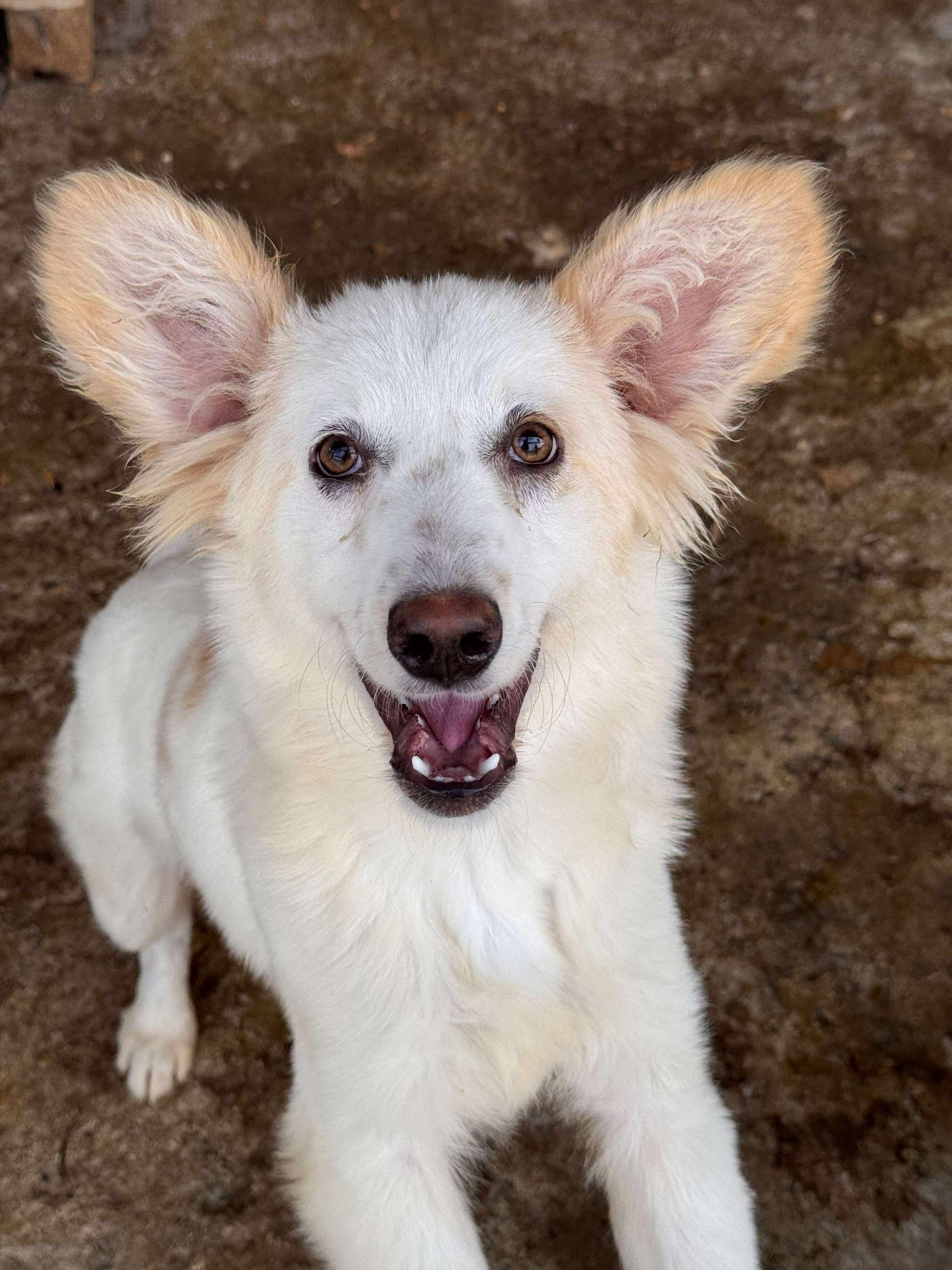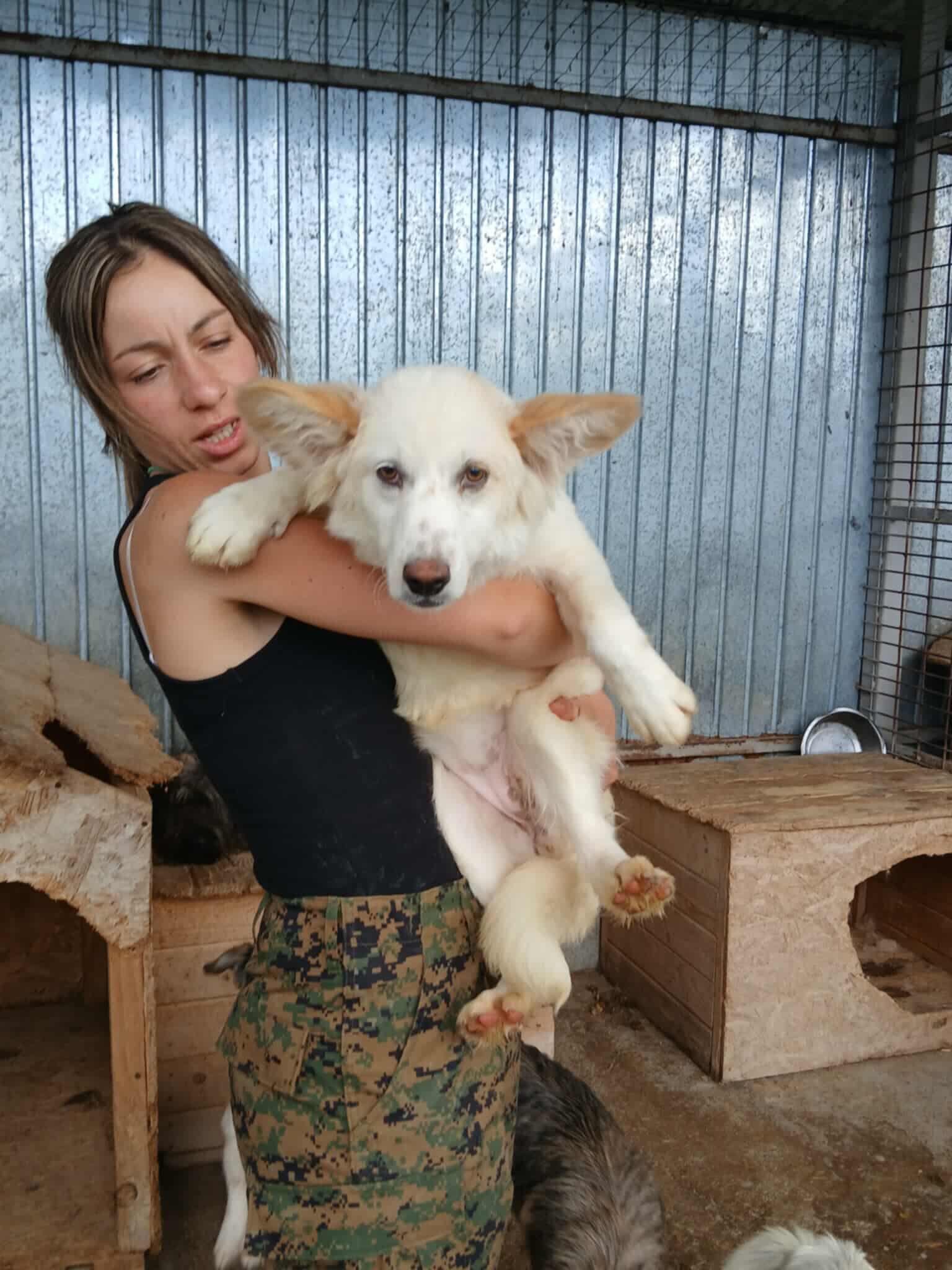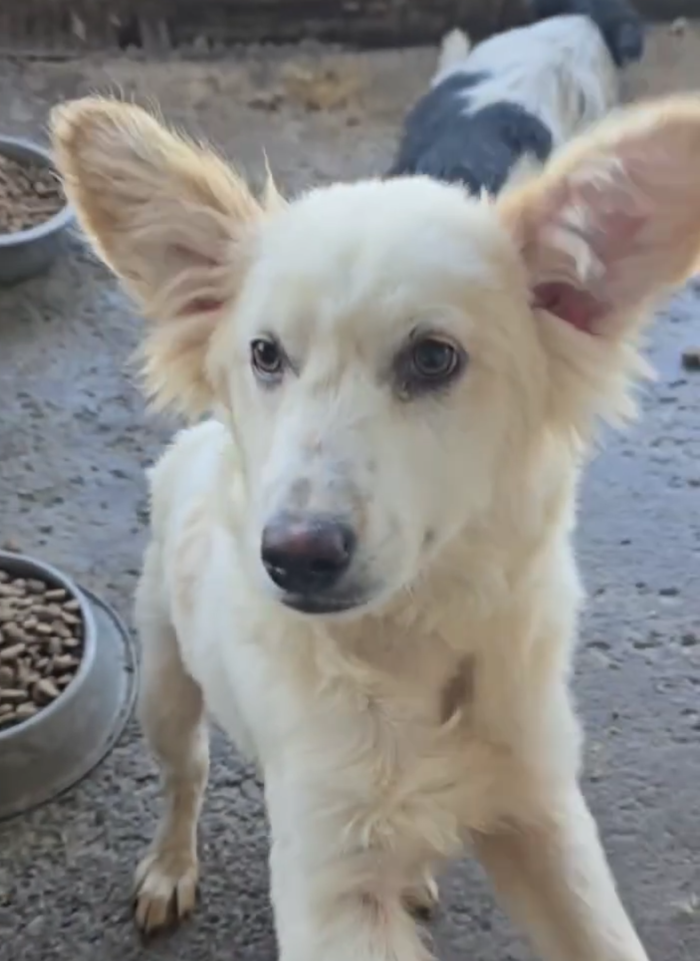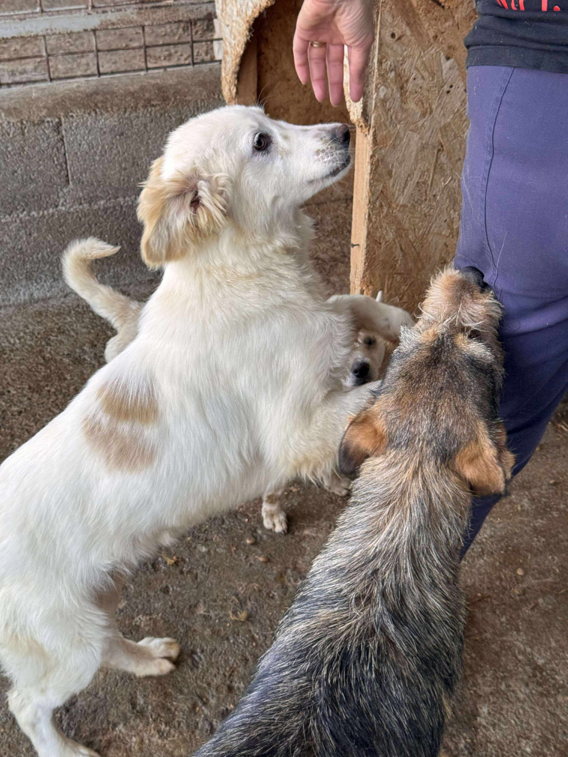 die kleine Hündin wurde von den Hundefängern eingefangen. Sie ist so freundlich, dass sie ihnen wahrscheinlich in die Arme gelaufen ist. Sie kann gar nicht verstehen, warum man sie einsperrt. Sie freundet sich schnell mit der kleinen Hündin Jenna in ihrem Zwinger an.